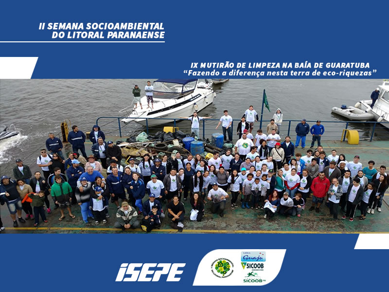 Aconteceu na semana passada a “II SEMANA SOCIOAMBIENTAL DO LITORAL PARANAENSE” no ISEPE Guaratuba. O encerramento ocorreu no sábado, dia 04/06, com o IX Mutirão de limpeza da baía de Guaratuba. O evento contou com a união de diversas instituições parceiras, mais de 200 voluntários, 25 embarcações e 01 ferry-boat. Foram retiradas dos nossos manguezais cerca de 02 toneladas de resíduos.