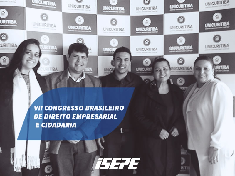 Entre os dias 08 e 10/06, os professores do Curso de Direito, e também integrantes da comissão organizadora do evento, Priscila Lima e Rafael Lima Torres, participaram do VII Congresso Brasileiro de Direito Empresarial e Cidadania – CONBRADEC, evento que reúne grandes nomes do cenário jurídico/científico, juntamente com os Professores Alcelyr Neto e Andrea Tessaro. Ainda estiveram presentes os alunos Petrus Cyulyk, Josy Moreira, Gabriel Cremoneis e Leonardo Peris, que tiveram seus trabalhos em coautoria com os Professores Luciano Raiter, Rosane Patrícia Fernandes e Andrea Tessaro, aprovados pelo comitê científico e compareceram para defendê-los oralmente. Na oportunidade, foram avaliados pelo Ministro do Superior Tribunal Militar, José Barroso Filho. Com seriedade e comprometimento, o ISEPE incentiva seus professores e alunos para se destacarem com excelência no mundo acadêmico/profissional, essa é a nossa missão.