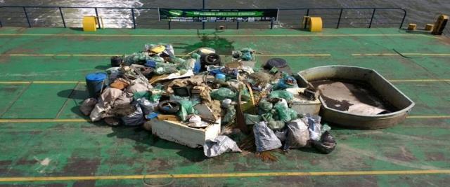 Para o trabalho de coleta e transporte, o mutirão contou com o apoio de 32 embarcações e foram coletadas quase cinco toneladas de lixo, entre freezers, geladeira, fogão, televisão, isopor, plásticos, partes de rede de pesca, e muitos outros objetos. O Mutirão de Limpeza da Baia acontece todos os anos e faz parte da comemoração do Dia Mundial do Meio Ambiente. O evento foi promovido pelo Instituto Guaju em parceria com a Faculdade Isepe Guaratuba, Sicoob-PR, Prefeitura Municipal, Rádio Alternativa FM e Travessia de Guaratuba, além de diversas entidades e empresas.